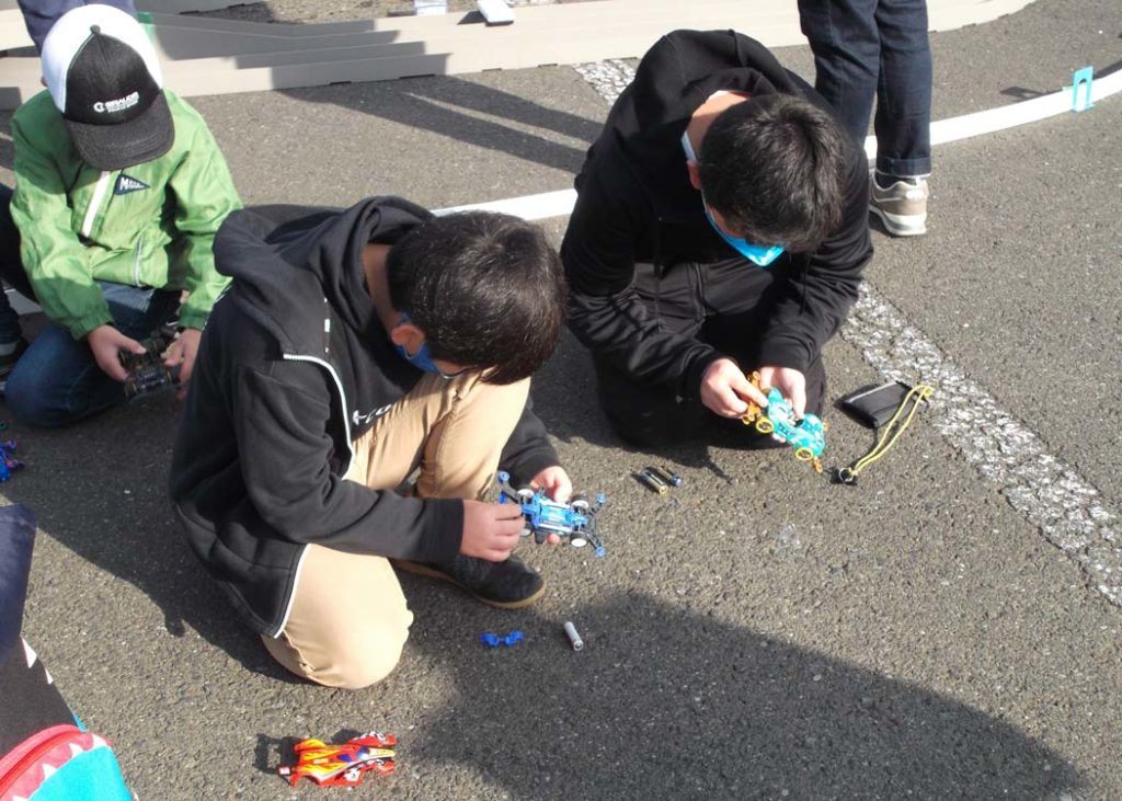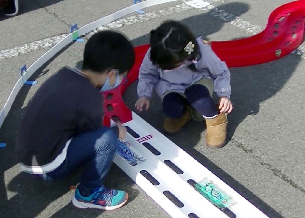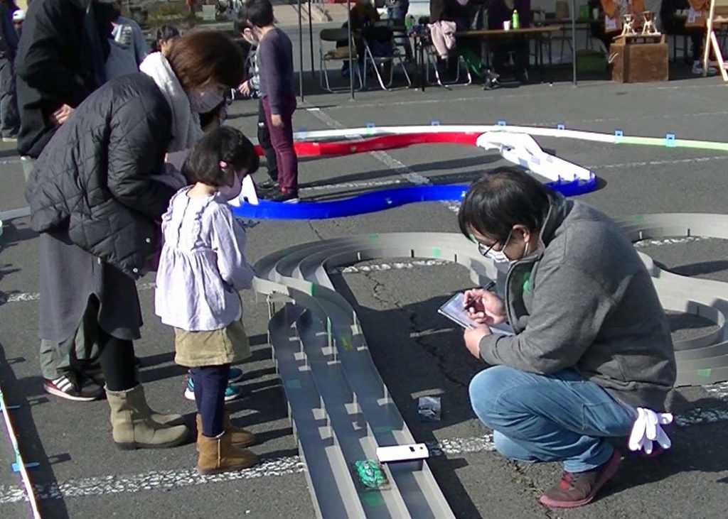 従来からの焼きそばや餅の販売から、カラオケ大会、輪投げ大会、お囃子演奏のほか、今回初めてミニ四駆の走行会を行いました。