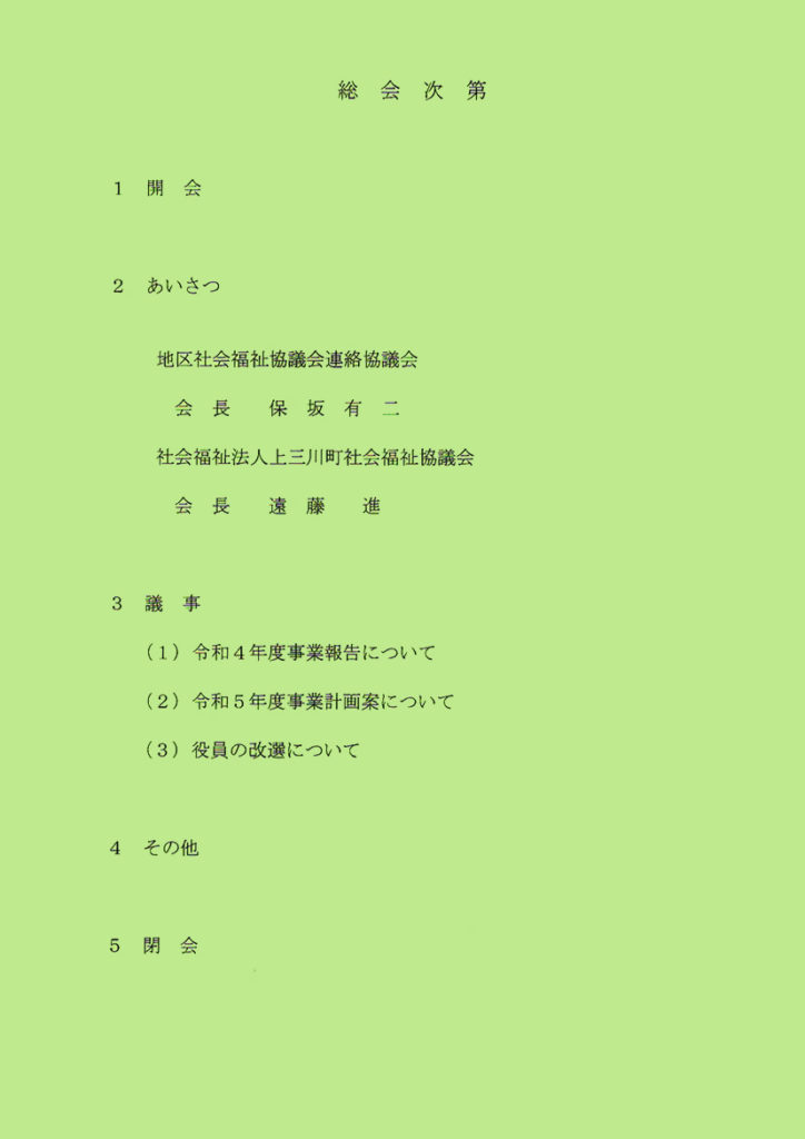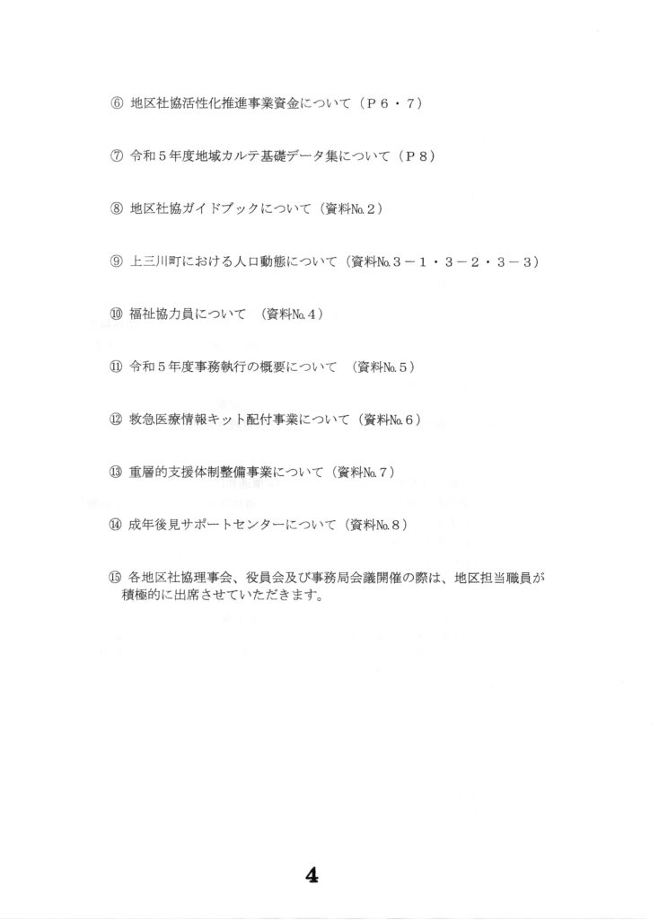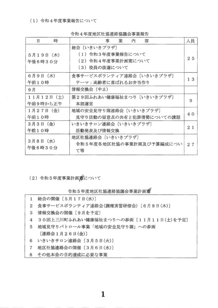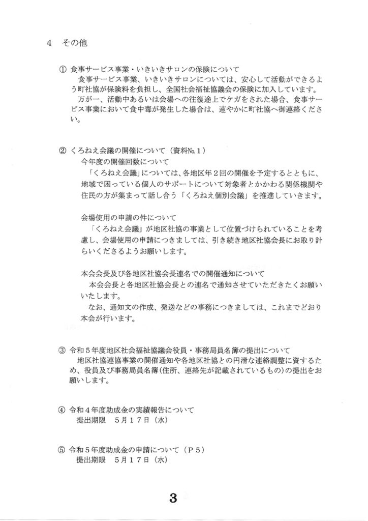 令和5年5月17日水曜日に、上三川町社会福祉協議会の地区社協連絡協議会総会が、いきいきプラザ2階大会議室にて開催されました。
