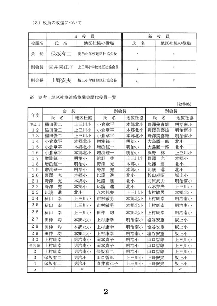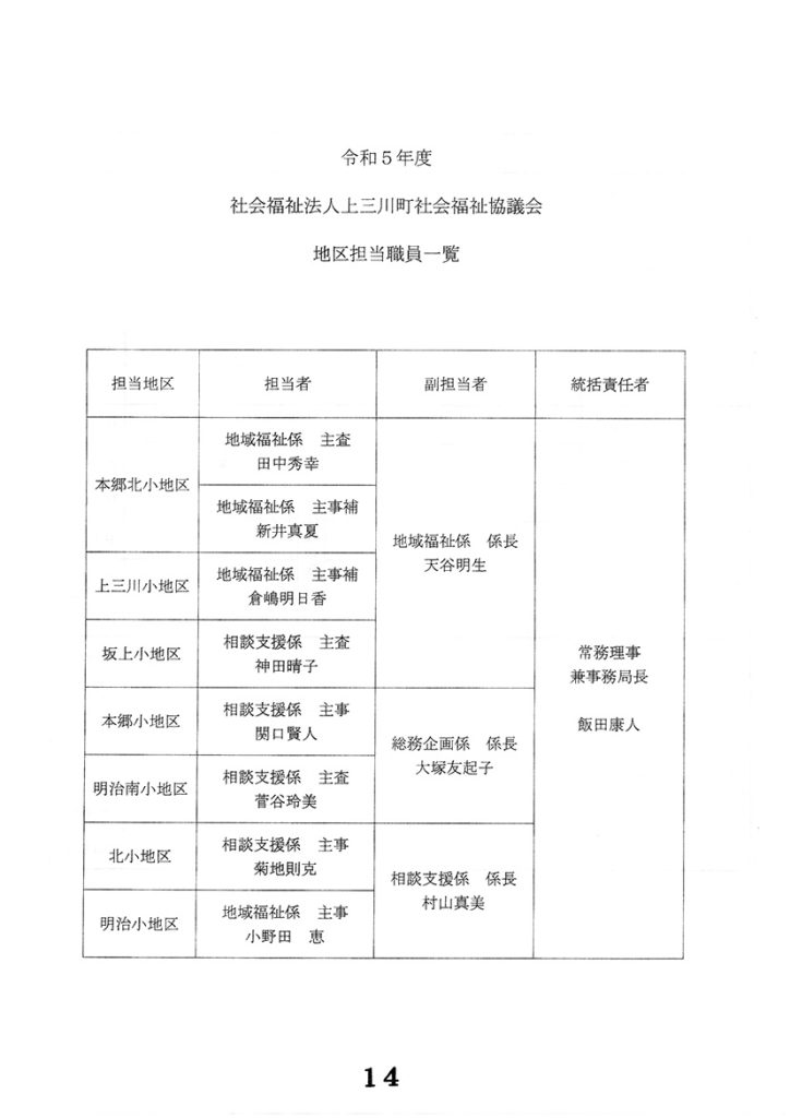 当本郷北小学校地区社会福祉協議会には、田中秀幸主査と新井真夏主事補が担当しています。