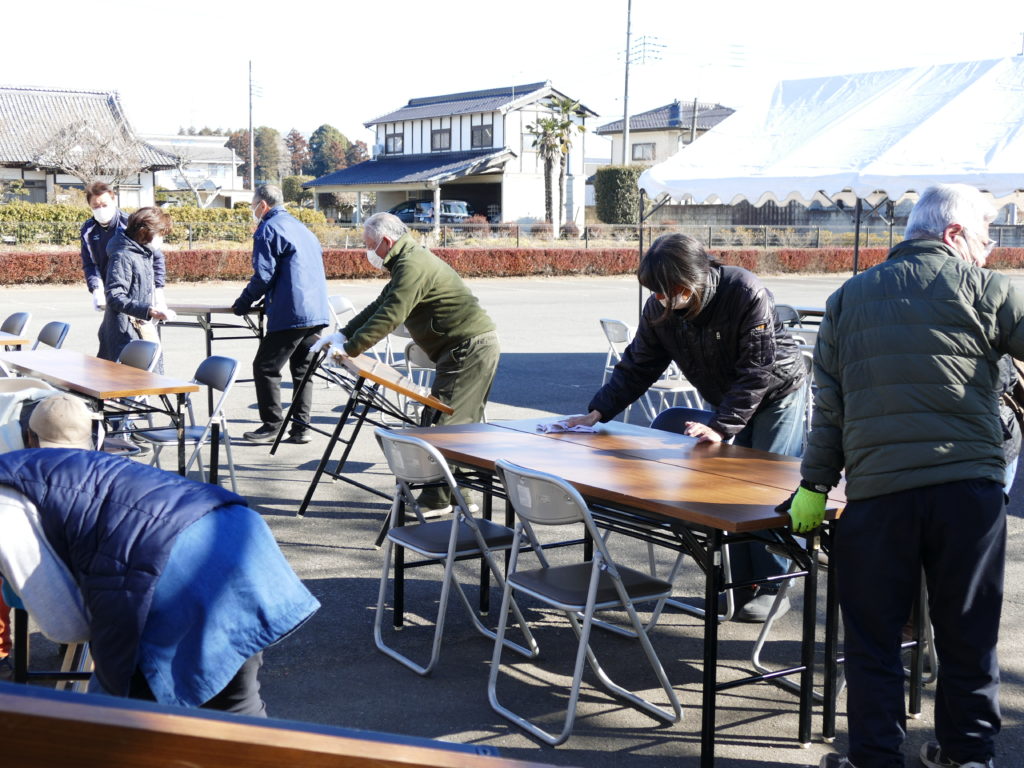 関係者は、朝9時前よりコミセンに集合し会場づくりや炊き出し用のカレーの準備を始めました。
