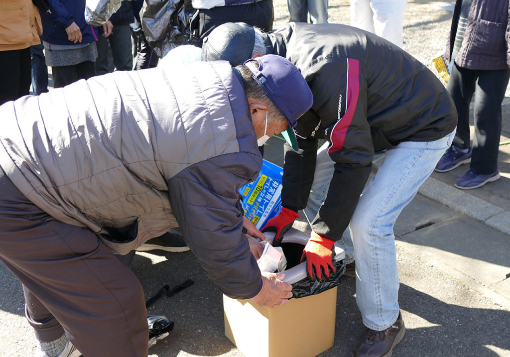 みなさん初めてであろうガソリンエンジン発電機の使い方のレクチャーや、防災トイレの体験をしましたが、トイレに関してはみなさんの関心が非常に高く、キットを組み立てたり実際に座ってみたりと大人気。トイレキットの値段を盛んに質問されましたが、当日は答えられずここでお知らせします。